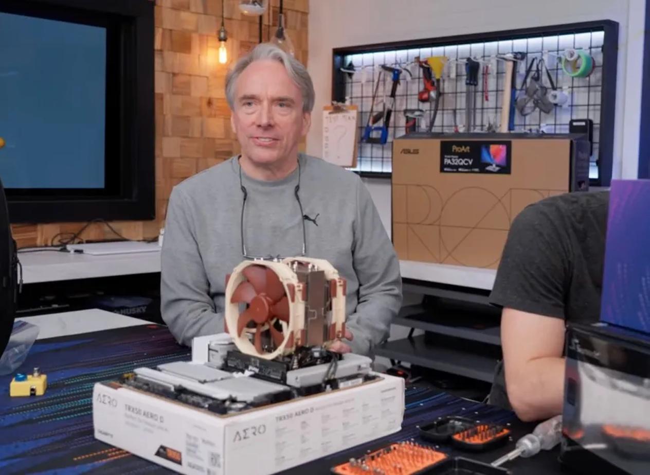 散热部分,LTT 给他选的是 Noctua NH-U12S TR5-SP6 风扇。Linus 没有异议,因为他有两个原则:不想听见电脑声音、不信任水冷的长期稳定性。