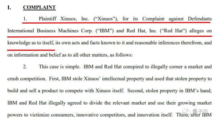 Xinuos的CEO曾在2016年表示:我们是购买产品的投资者,并没有买到对IBM进行诉讼的能力,我们对此完全没有兴趣。但在5年后,Xinuos又一纸诉状,控告IBM和Red Hat公司版权侵权和反垄断: