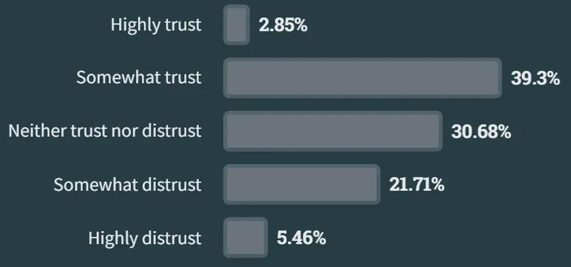 对 AI 工具的信任度:39% 的人对 AI 工具表示有些信任