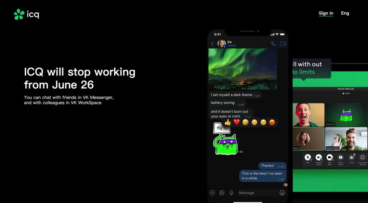 ICQ 官网于2024年5月下旬发表声明,称将于 6 月 26 日关闭,它建议用户改用 VK Messenger。