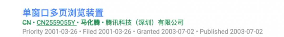 2001 年的春天,腾讯申请了自己的第一个专利 —— 单窗口多页浏览装置,发明人是 Pony(马化腾)。