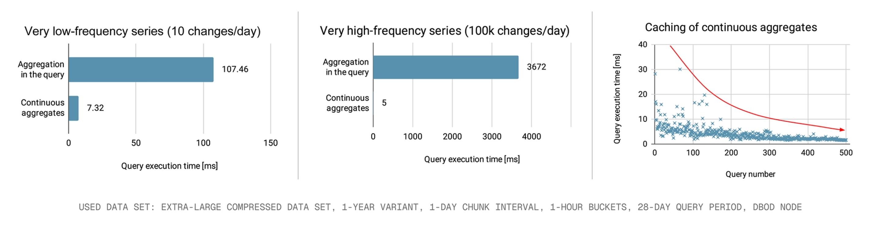 Martin Zemko 说:“对于连续聚合(continuous aggregates)而言,性能提升令人印象深刻,因为查询的数据量显著减少了。我们还观察到强烈的缓存效应,因为数据量相对于原始数据来说非常小,使得你的超表(hypertables)非常容易地适应内存。我们预计连续聚合(Continuous Aggregates)将成为一个颠覆性因素,尤其是在绘制高频信号时。”