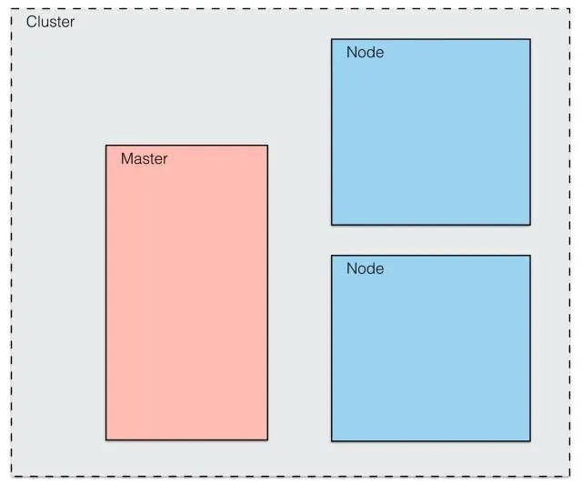 首先,既然是分布式系统,那么肯定有多个Node节点(物理主机或者虚拟机),它们共同构成了一个分布式集群,而这些节点之间会有一个Master节点,统一管理Node节点。如图所示: