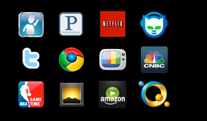 另外,Google TV 还可以运行各种应用程序,现在已有的包括新闻网站 New York Times,USA Today;音乐网站 VEVO,Pandora,Napster;社交网络 twitter 等等。网站的开发者区域也注明了明年早些时候,开发者将可以为 Google TV 开发并销售 Android 应用程序。