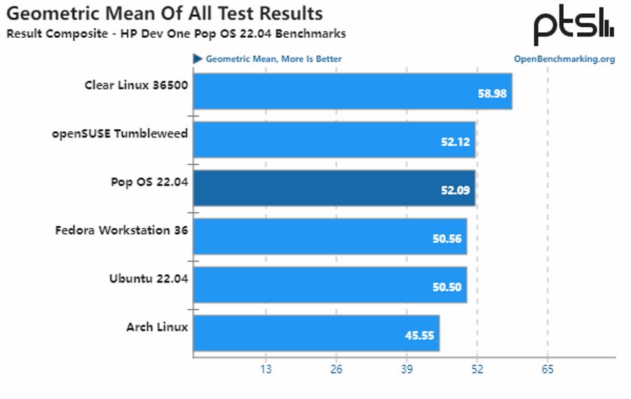 科技媒体 Phoronix 6月中旬在 HP Dev One 上测试了运行不同 Linux 发行版的性能表现,这些发行版包括 Arch Linux, Ubuntu 22.04, Fedora Workstation 36, openSUSE Tumbleweed, Clear Linux 和 Pop!_OS 22.04。