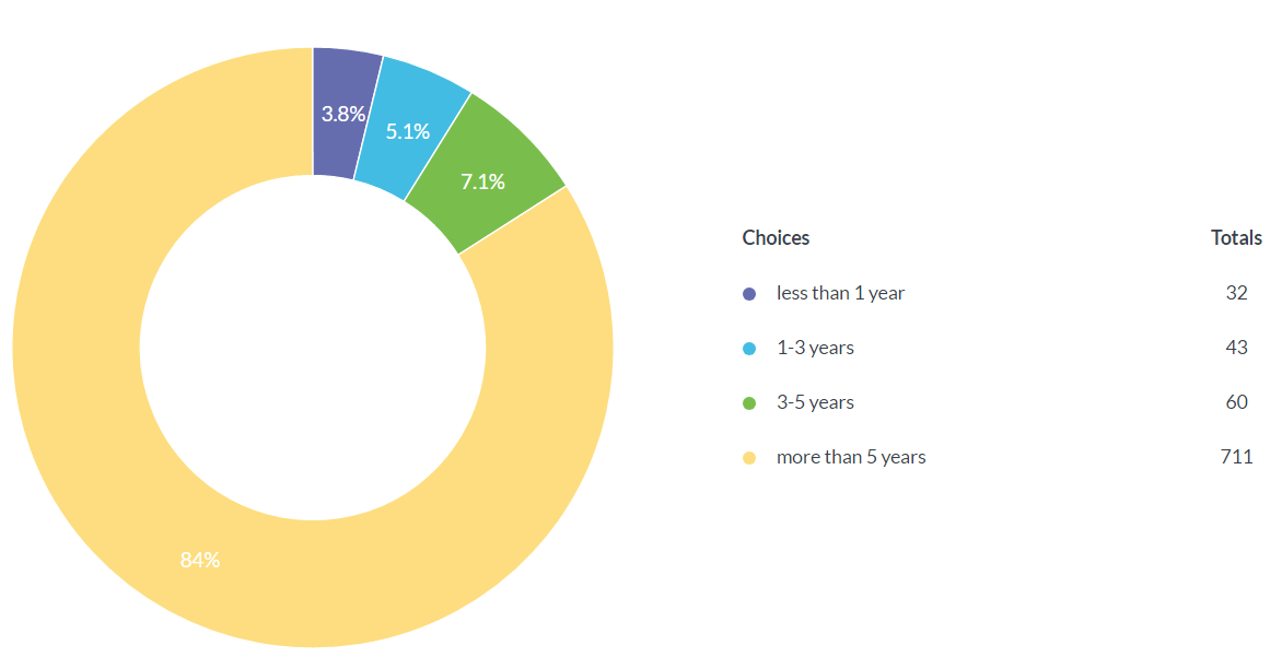 bip blog 在今年3月7日-4月14日期间针对 Perl 开发者进行了一项调查,收到了来自世界各地开发者的 849 份回复。调查结果显示了 2017 年 Perl 的状况,以及一些有趣的趋势,可供参考。Q1 使用 Perl 5 已有多长时间?