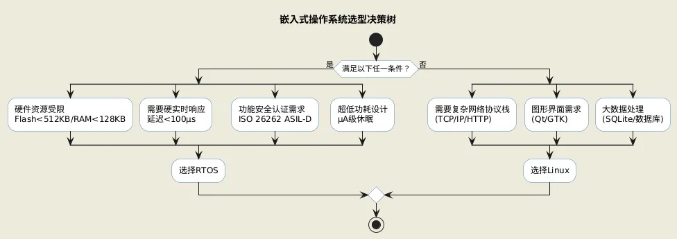 嵌入式RTOS:硬实时(μs级响应),中断延迟通常<10μs。具有强实时性,采用抢占式多任务调度算法,能确保关键任务在严格的时间期限内完成,响应时间可预测,适用于对实时性要求极高的场景,如工业自动化控制、航空航天等。
