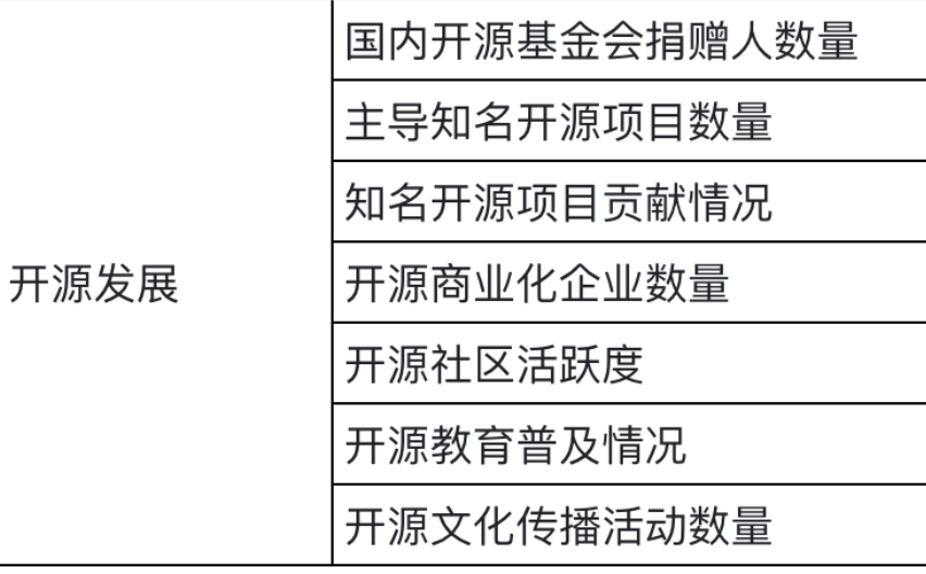 其中 中国软件名城指标体系 “创新能力” 中,对 “开源发展” 提出要求: