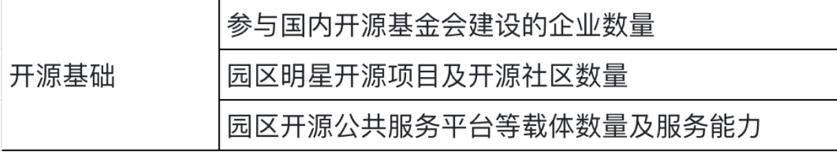中国软件名园指标体系 “产业基础” 指标中,提到对 “开源基础” 的要求: