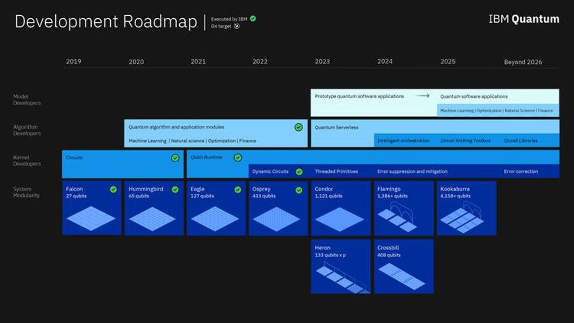 我们正在不断扩大和推进我们的量子技术,跨越硬件、软件和经典集成,以应对我们这个时代的最大挑战,与我们的合作伙伴和全球客户一起。这项工作将被证明是未来以量子为中心的超级计算时代的基础。 当我们将 Osprey 芯片的尺寸推向极限时,如果你仔细观察,你会发现它已经非常大了。明年,1000(量子比特)将会非常多。 在那之后,我们一直在设计和工程基于模块化的量子计算的整个架构。