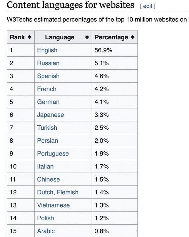 在互联网语言使用排名榜上,中文仅列第九位,占比1.5%,沦落到了跟越南语一样的地步,而英语以58%的压倒性优势排在榜首。而截至2022年底,我国网民规模达到10.67亿,汉语用户占到了全球的21.5%,也就是说,世界五分之一的网民,只产出了1.5%的内容。我们越来越像一座孤岛。