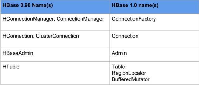 HBase 0.98 与 HBase 1.0 接口名称对比
