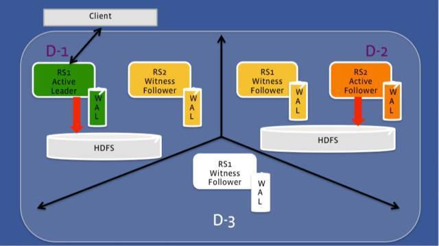 只有主 Region 接收写请求,并把数据持久化到 HDFS 上。