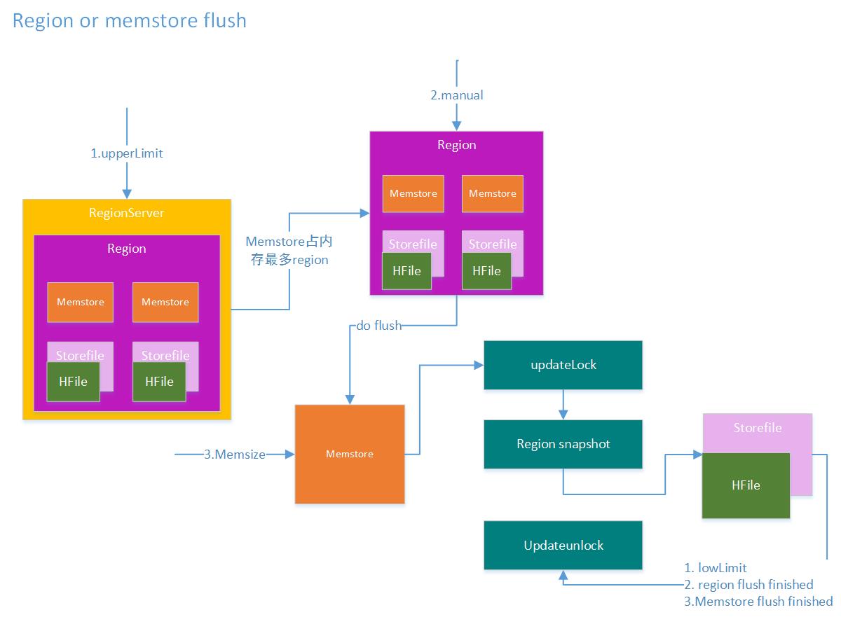 memstore整体内存占用上限通过参数hbase.regionserver.global.memstore.upperLimit进行设置,当然在达到上限后,memstore的刷写也不是一直进行,在内存下降到hbase.regionserver.global.memstore.lowerLimit配置的值后,即停止memstore的刷盘操作。这样做,主要是为了防止长时间的memstore刷盘,会影响整体的性能。