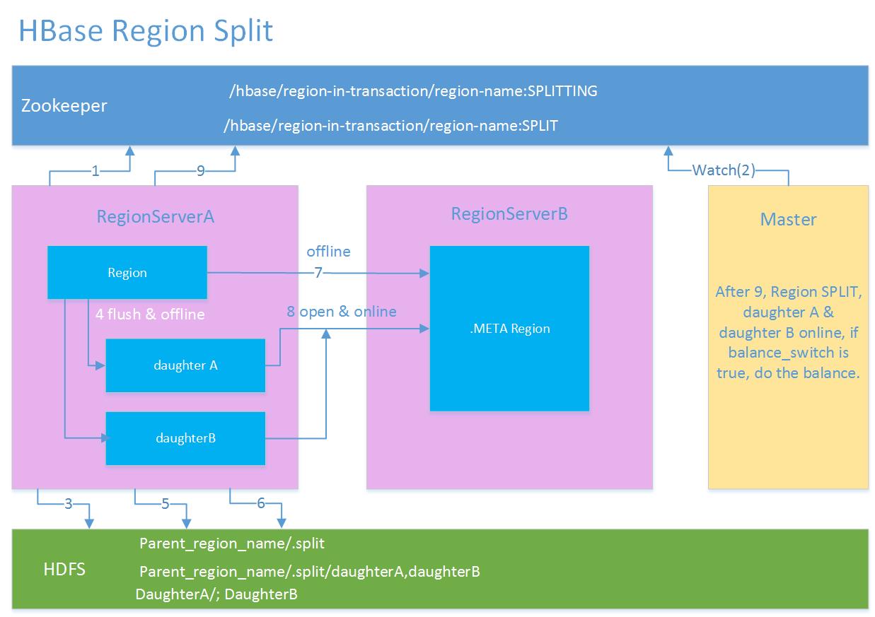 7、Parent region通知修改.META.表后下线,不再提供服务。