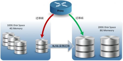 第二种是中等规模的用户,每个用户独占一个MySQL实例,每个实例占用的内存从256M到32G不等。用户的内存空间和磁盘空间也是可以调节的,当前机器满足不了用户对资源的要求时,可以迁移到资源有空闲或者更高配的服务器上。