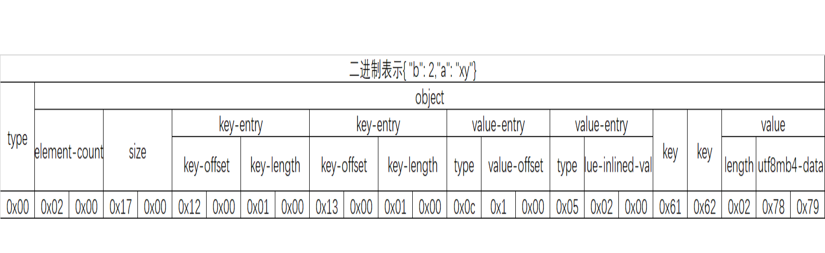 key 表示 key 值的真实值,类型为:key ::= utf8mb4-data, 这里无需指定 key 值长度,因为 key-entry 中已经声明了 key 的存储长度。同时,在同一个 json 对象中,key 值的长度总是一样的。