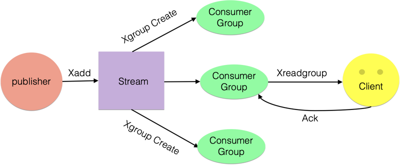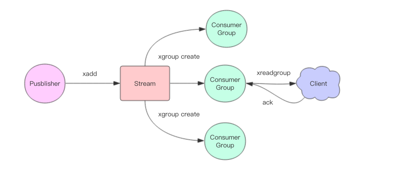 每个消费组可以含有多个消费者对象,消费者共享消费组中的Last_delivered_id,相同消费组内的消费者存在竞争关系,即一个元素只能被其中一个消费者进行消费。