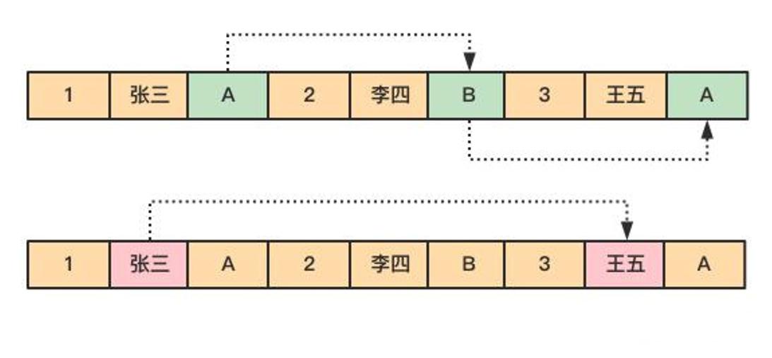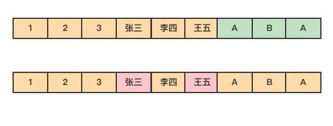 对于 OLAP 场景,一个典型的查询需要遍历整个表,进行分组、排序、聚合等操作,这样一来行式存储中把一整行记录存放在一起的优势就不复存在了。而且,分析型 SQL 常常不会用到所有的列,而仅仅对其中某些需要的的列做运算,那一行中无关的列也不得不参与扫描。然而在列式存储中,由于同一列的数据被紧挨着存放在了一起,如下图所示。