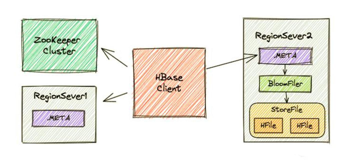 HBase Client 请求数据所在的 Region Server,获取所需要的数据。Region 首先在 MemStore 中查找,若命中则返回;如果在MemStore 中找不到,则通过 BloomFilter 判断数据是否存在;如果存在,则在StoreFile中扫描并将结果返回客户端。