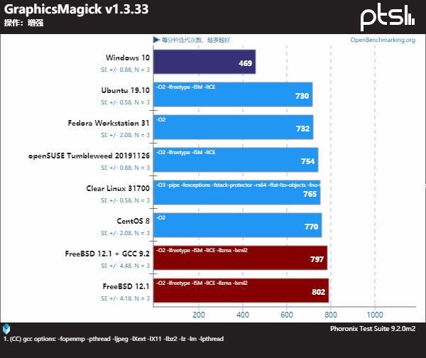 这次测试既使用默认自带的LLVM Clang 8.0.1编译器,也使用ports里的GCC 9.2以作比较。测试平台参数如下: