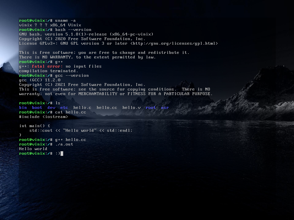 2021年6月消息,V 语言开发团队发布了首个使用 V语言编写的操作系统 —— Vinix,并表示此操作系统现在可以运行 mlibc 和 bash。Vinix 的源代码已遵循GPLv2开源许可协议并托管在 GitHub,其 repo 显示它采用 V 编写,致力于成为一款现代、快速且有用的操作系统。