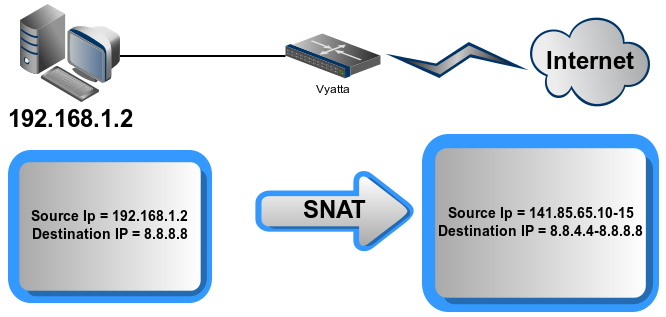 Source (SNAT). A connection originated from the local network is forwarded outside with source address substituted with specified address.源自于本地网络连接转发到外网,源地址替换指定的公网地址。