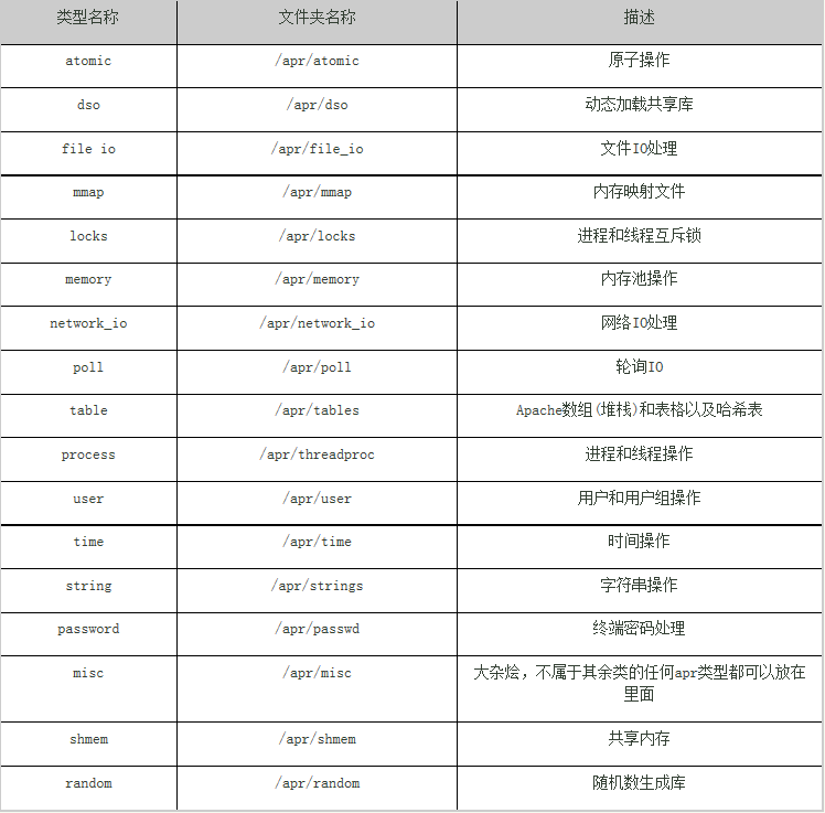 apr-util该目录中也是包含了一些常用的开发组件。这些组件与apr目录下的相比,它们与apache的关系更加密切一些。比如存储段和存储段组,加密等等。