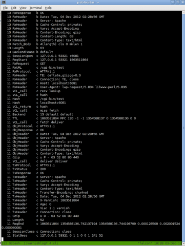 显示varnish接收到的HTTP头信息(既有客户端请求的,也有web服务器响应的):