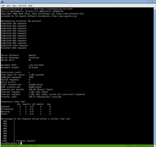 ab -c 1 -n 1000 http://localhost/cgi-bin/test