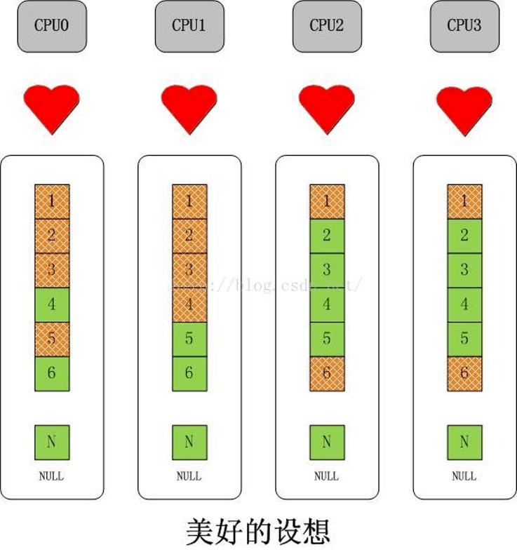 现在简单的将上面的模型扩展到多核心CPU,同样差不多的分配序列如下图所示: