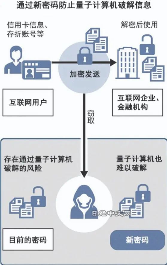 2022年1月上旬消息,支撑互联网通信安全的加密方式将首次发生重大变化。原因是随着新一代高速计算机——量子计算机的发展,密码有可能遭到破解。美国国家标准技术研究所(NIST)最早在1月内就将选定新的方式,在2024年之前确定具体规格。候选方式有日本NTT等参与制订的4种。全球企业将会面临进行软件更新等。