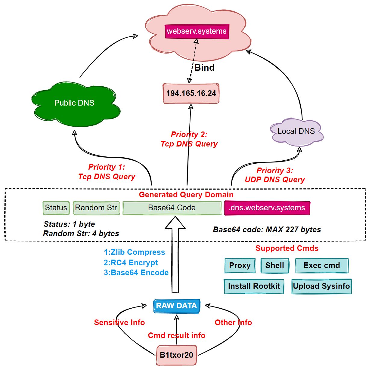 Linux下的后门木马“B1txor20”,基于 DNS 隧道技术