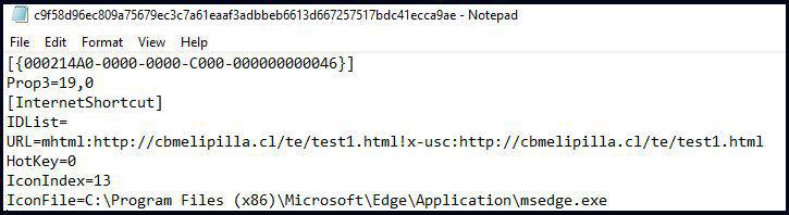 不过攻击者发现可以通过在 URL 指令中使用 mhtml: URI 处理程序,来强制 Internet Explorer 打开指定的 URL,如下图所示: