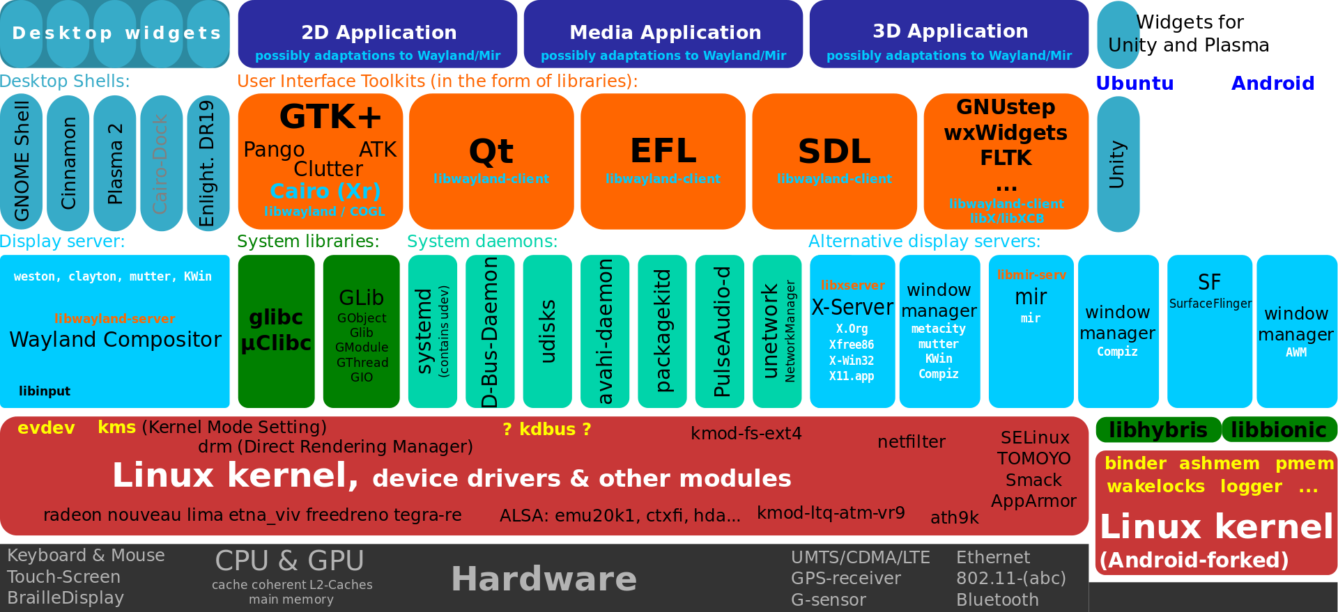 术语“操作系统”在这里不仅包括内核,还包括系统后台进程。例如,通过使用 D-BUS 的 udev (Linux 2.6 中取代 devfs 的, 提供动态 /dev 目录),当设备(比如一个 USB 照相机)插入时会发放出一个信号。 这样可以更紧密地将硬件集成到桌面中,从而改善用户体验。 桌面环境和 xinitrc 会自动启动 D-Bus 会话。xorg-xinit 提供的框架文件 ~/.xinitrc (/etc/skel/.xinitrc) 也会执行同样的操作,请确保自己的 ~/.xinitrc 是基于框架文件 /etc/skel/.xinitrc。