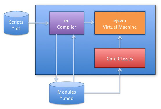 Ejscript™ is a compact, fast and powerful implementation of JavaScript. It fully complies with the ECMAScript Edition 3 specification, and adds enhancements such as modules, class declarations, optional typing, and a rich system library.