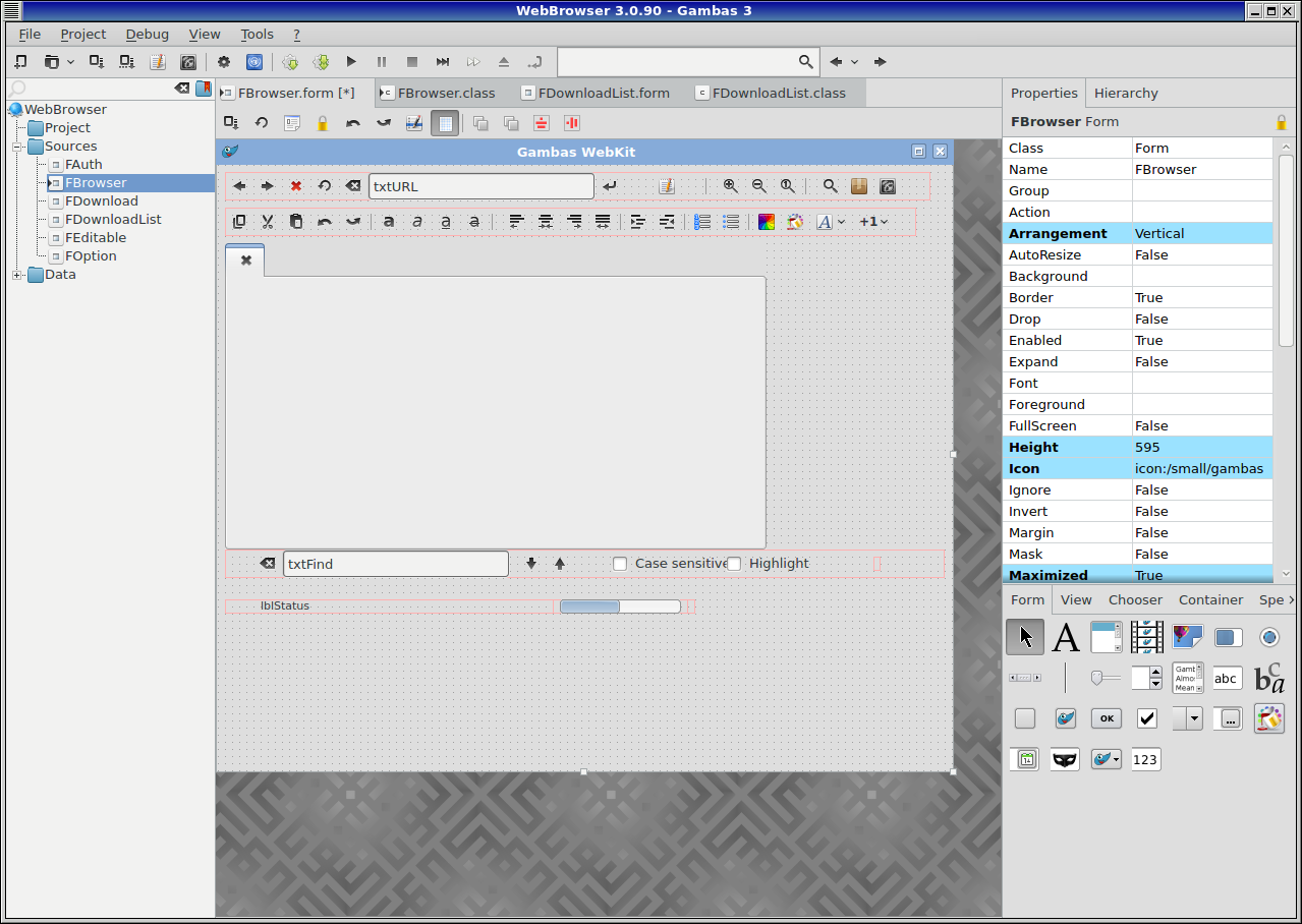 Gambas 是一个类Unix系统下类似于 Windows 的 Visual Basic 的可视化快捷开发工具;它被设计成为一个针对迁移到Linux平台上Basic开发者的Visual Basic替代产品。
