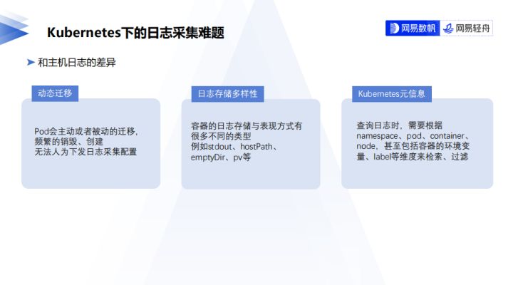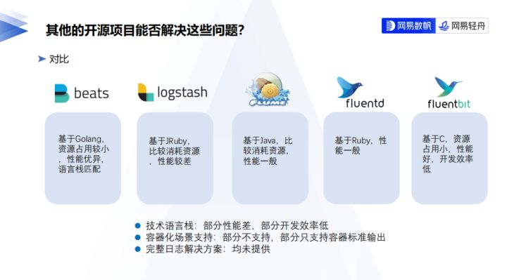 那么除了Filebeat外,其他的日志采集工具能不能满足需求?当前主流的日志采集Agent对容器化场景下的日志采集支持不太理想,大部分开源日志采集工具仅支持到容器标准输出的采集,对云原生下日志采集也没有整体解决方案。