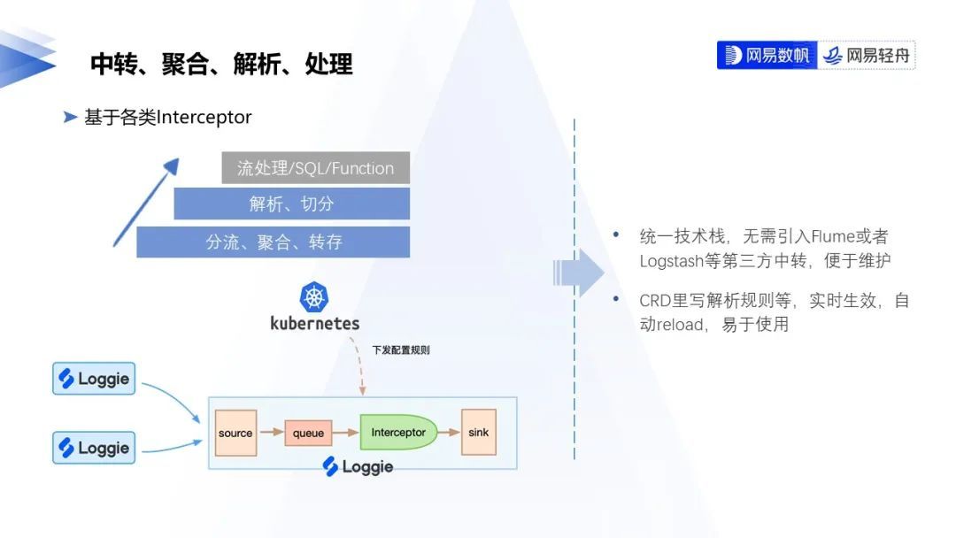 通过CRD的方式打通日志处理链路,用户可以通过配置CRD定义日志中转、聚合和发送的方案,可以配置日志的解析、限流、报警规则,在进行私有化部署和将日志服务平台化时大大降低了配置管理的复杂度,一旦有配置变更,k8s可以快速地把配置同步到日志采集服务中。