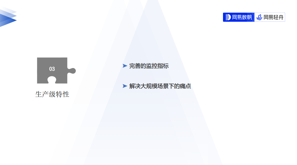 生产级的特性:基于长期的大规模运维经验,形成了全方位的可观测性、快速排障、异常预警、自动化运维能力