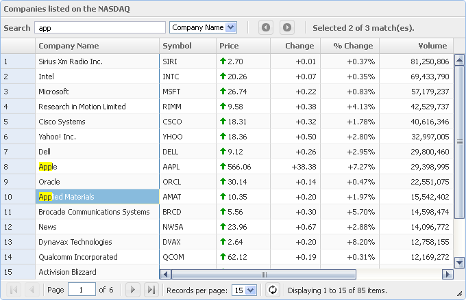 Bestowed with frugal memory architecture and virtual rendering, it delivers similar performance irrespective of whether it's 10 or 1 million records. It's written in the spirit of creating a library with open API to facilitate add custom code and interact with other javascript/jQuery libraries in callbacks or events as required and can be customized to an extent only limited by one's imagination! It blends very well with other jQueryUI controls and is based upon jQueryUI Widget factory which makes for very good design pattern for UI controls with consistent API. Able to create beautiful and prettier grids and enriched with wide range and variety of features, it's equally suitable for displaying basic HTML tables and for advanced use w.r.t.