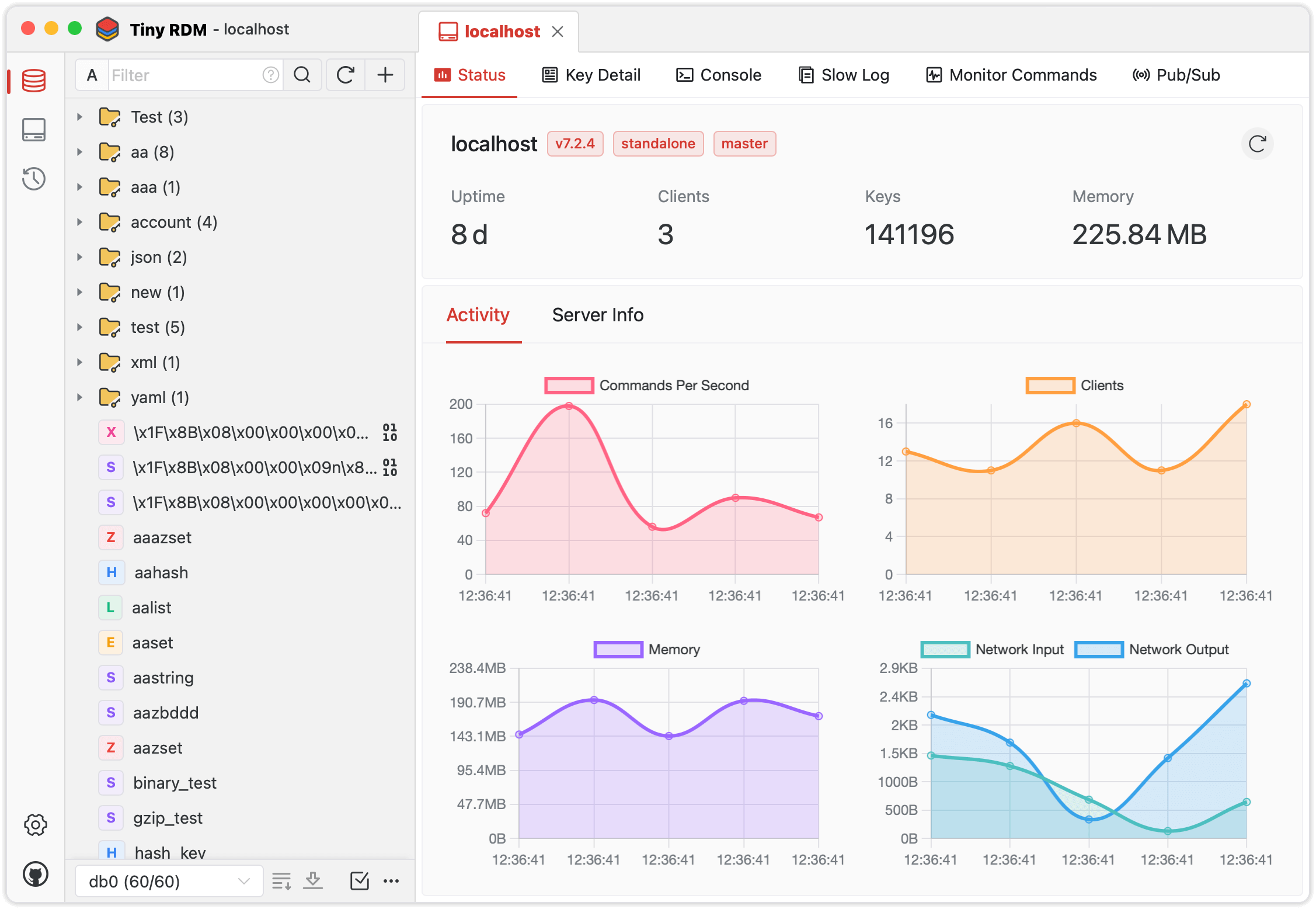 连接成功后,就可以在Tiny RDM中愉快地进行各种Redis操作了,无论是查看数据、修改配置,还是执行命令,一切尽在掌握。且它还保留了redis-cli的原生命令行交互,方便在图形界面和命令行之间自由切换。