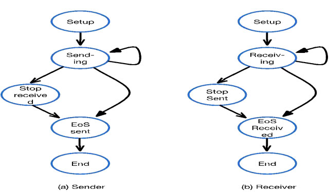 上图展现了我们实现UDP高速互联网络的状态机。并且设计时还需要考虑死锁的消除。详细信息可以参考参考文献。