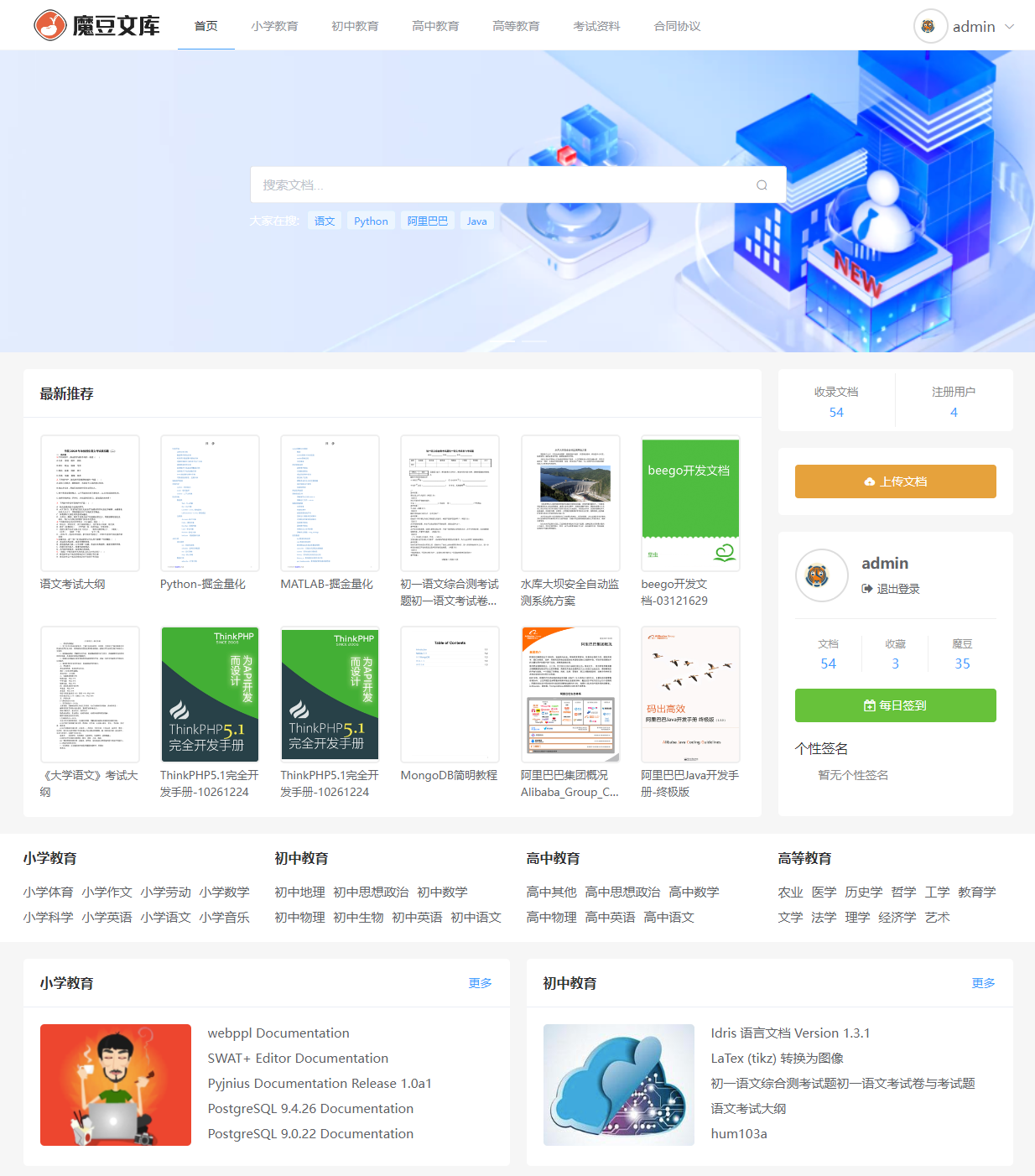 魔豆文库是类似百度文库、新浪爱问文库的开源文库系统解决方案,由深圳市摩枫网络科技 (Morefun Network Technology Co., Ltd ) 使用 Golang 开发,支持 TXT、PDF、EPUB、MOBI、Office 等格式文档的在线预览与管理,为 dochub文库 (github, gitee) 的重构版本。支持 office (全部类型)、PDF、TXT、EPUB、MOBI 等多种文档格式的在线阅读浏览,支持无限级分类、文档批量上传、文档批量转换、全文搜索、云存储、网络爬虫、VIP会员、手机号登录注册以及支付宝和微信支付等功能,拥有简洁美观的用户视觉和功能体验。使用Go语言开发并在Apache协议下授权。