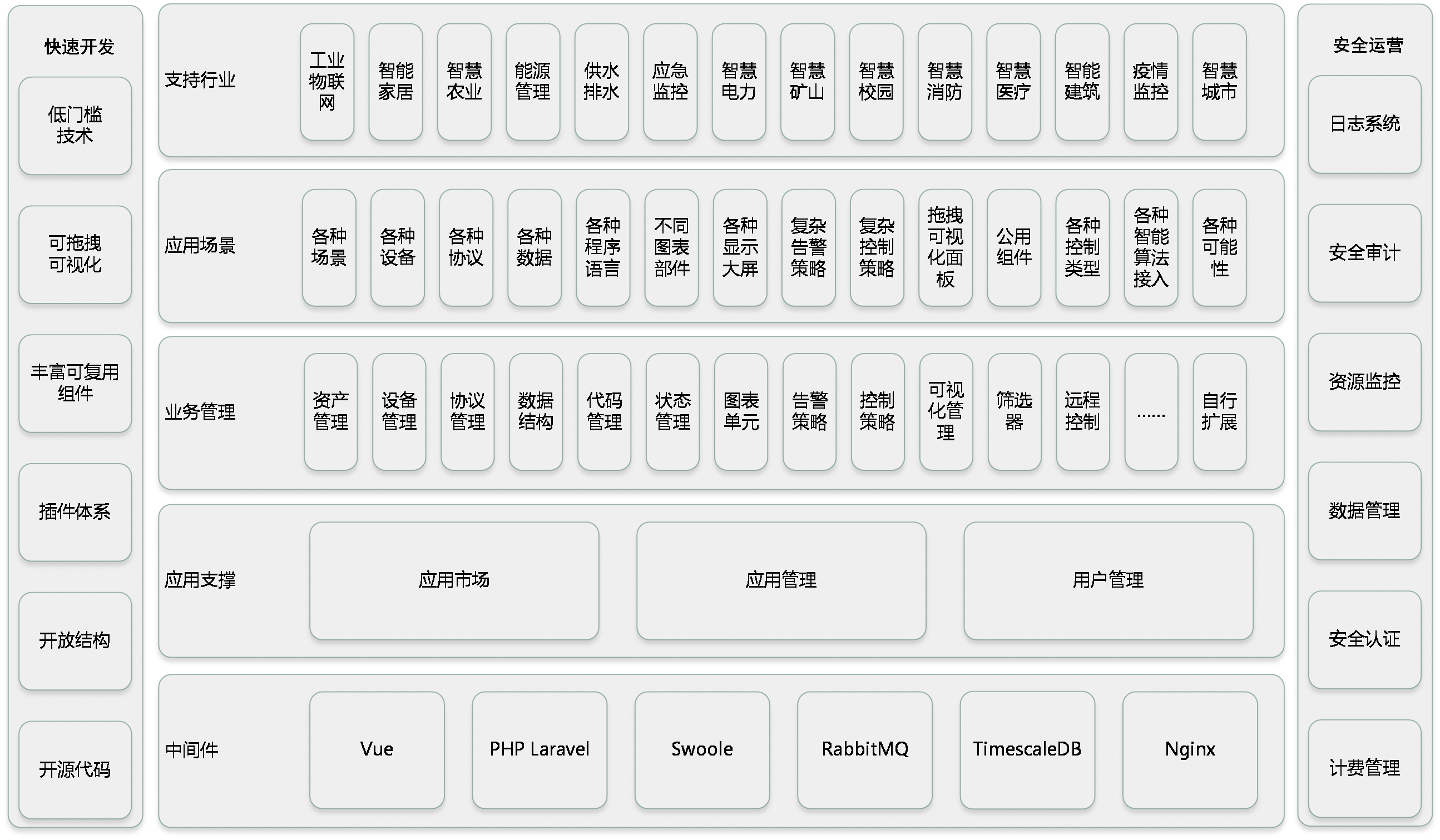 ThingsPanel物联网平台是一套面向快速实施的物联网方案开发与共享平台,以简洁、快速、美观、通用为特点。业务交付时间是传统的物联网方案的30%以下,大幅度降低实施成本。采用PHP开发并在ApacheV2.0协议下授权。