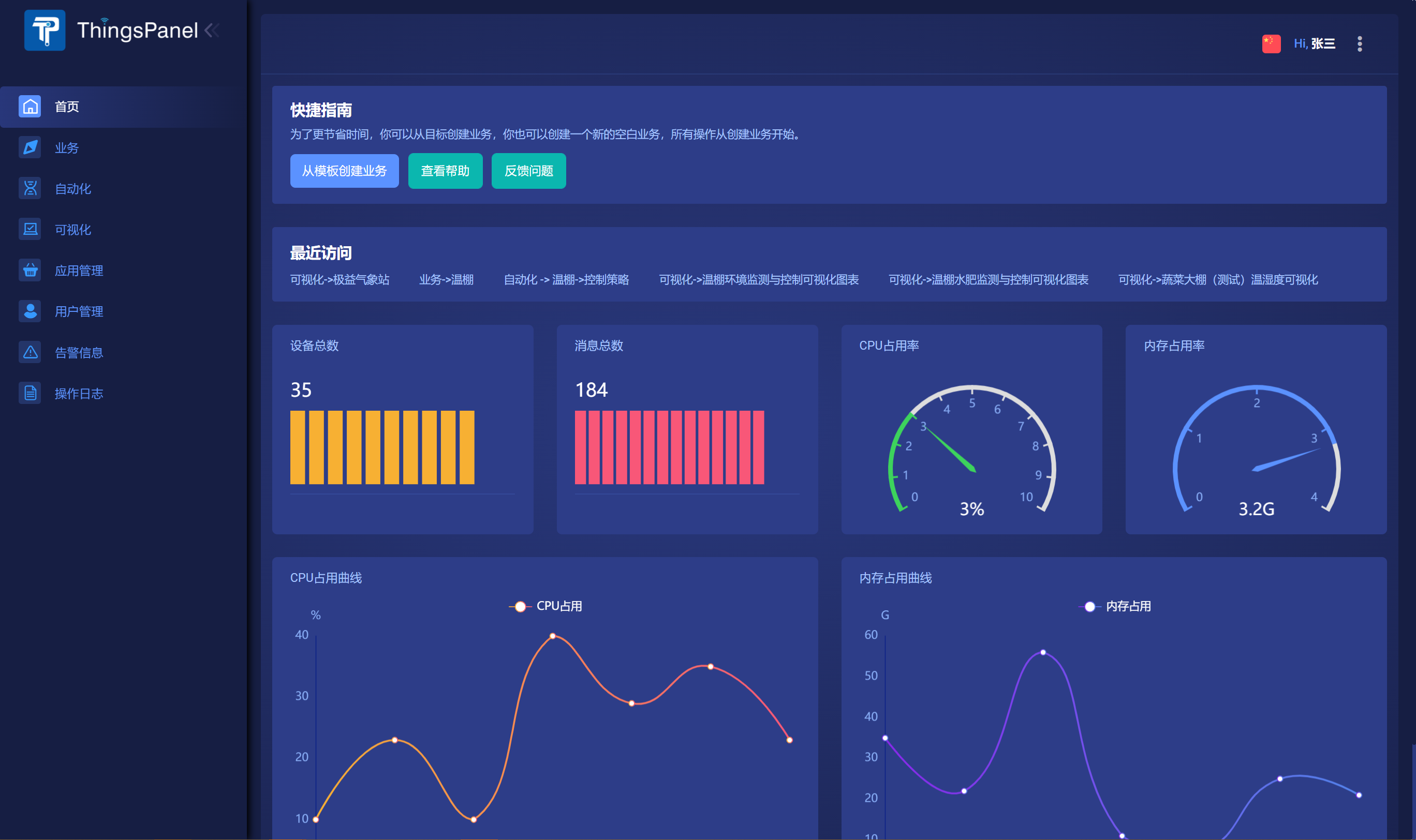 ThingsPanel可广泛用于开发交通、医疗、消费、家居、消防、安防、工业、农业等各个领域的物联网应用方案。