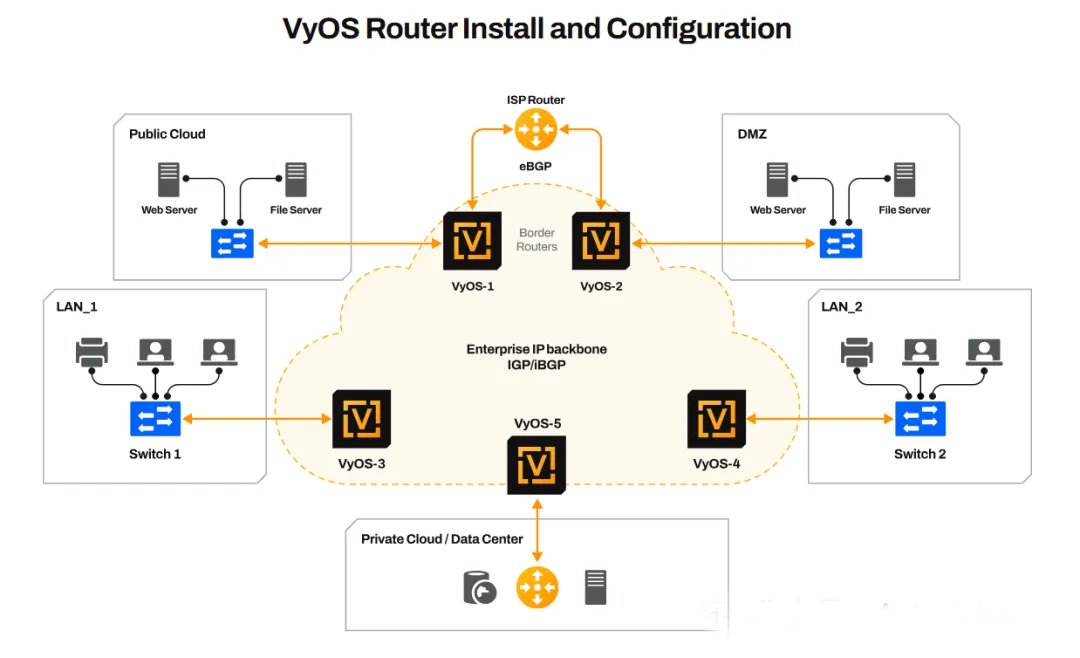 VyOS 作为一个开源的网络操作系统,提供了强大的路由、安全和 VPN 功能,使其成为构建灵活、可扩展且经济高效的企业网络的理想选择。以下是其6大核心使用场景。