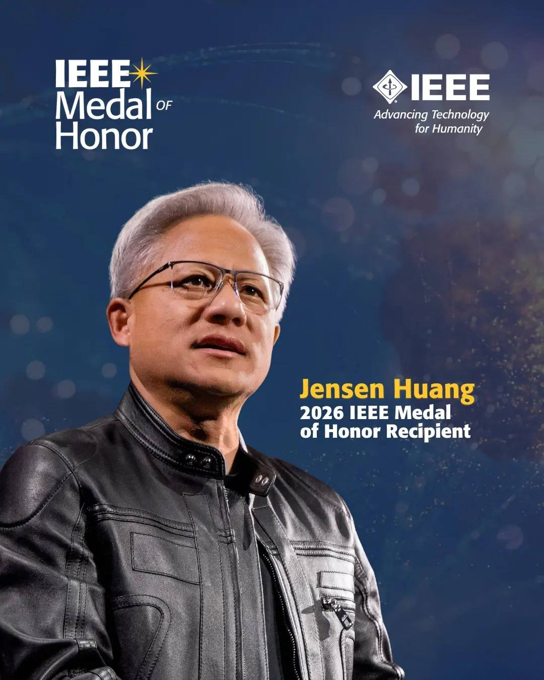 2026年1月6日,在拉斯维加斯举行的 CES 展会上,全球最大专业技术组织 IEEE(电气电子工程师学会)总裁兼首席执行官 Mary Ellen Randall 在一次特别媒体活动上宣布:英伟达创始人、总裁兼首席执行官黄仁勋荣获 2026 年 IEEE 荣誉奖章(2026 IEEE Medal of Honor Recipient),这标志着全球最大的科技舞台之一迎来了一个真正的里程碑时刻。