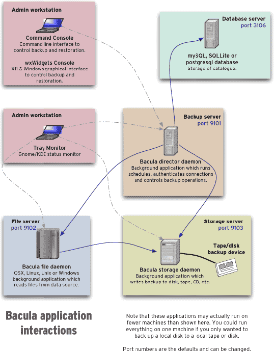 Bacula是一套计算机程序,允许系统管理员来管理备份,恢复和核查在网络上的计算机数据。 它可以备份到不同类型的媒体,包括磁带和磁盘。在技术方面,它是一个网络客户机/服务器的备份程序。相对易于使用和高效,同时提供许多先进的存储管理功 能,可以很容易地找到和恢复丢失或损坏的文件。由于它采用模块化设计,具有很好的伸缩性,Bacula 可以从小型单机系统扩展到由位于大型网络上的数百台计算机组成的系统。