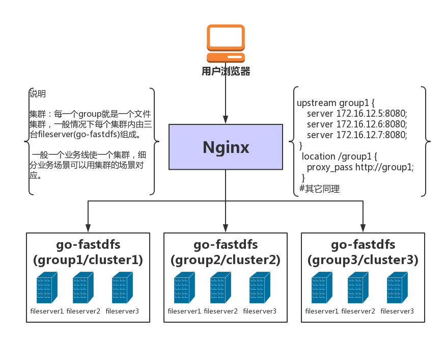 1、在go-fastdfs中,一个集群就是一个group。